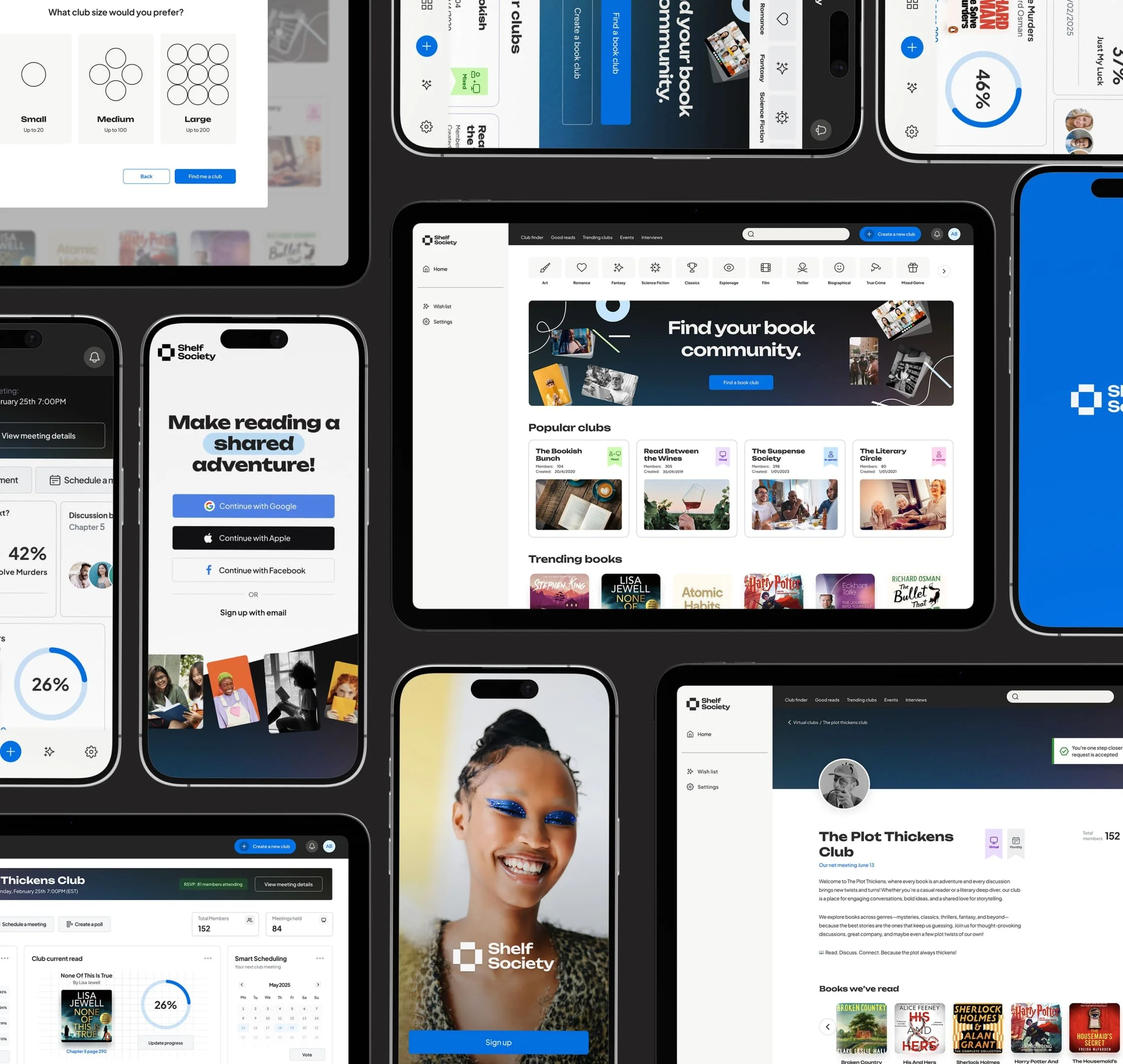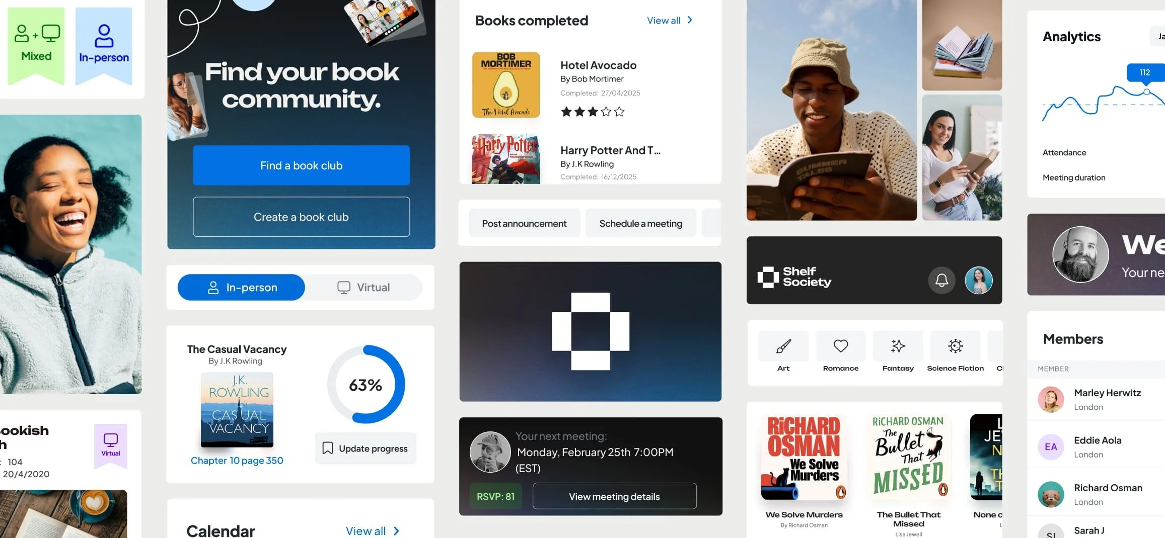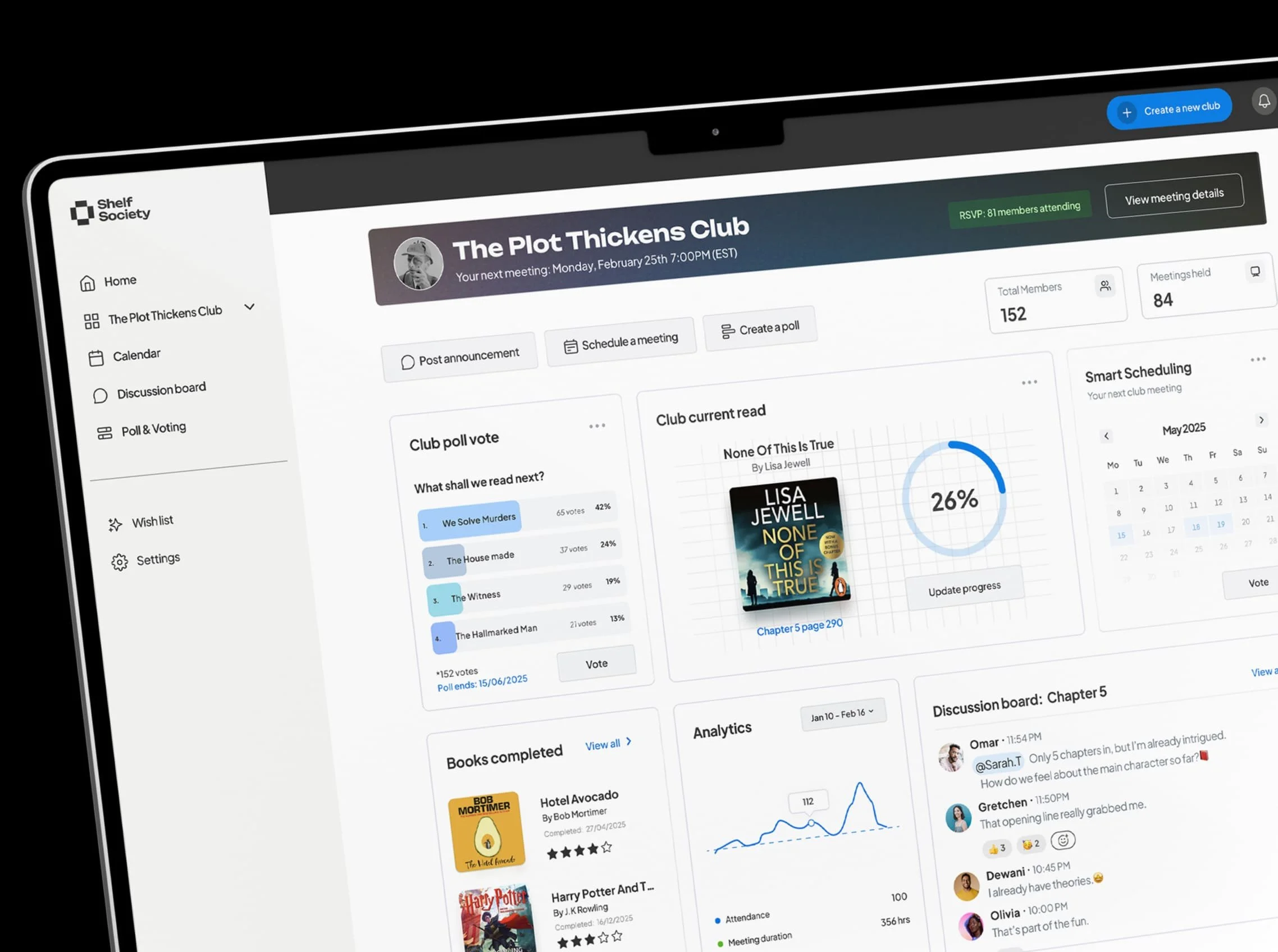 Shelf Society is a concept platform that brings scheduling, book voting, and discussion into one shared space, making it easier for book clubs to stay organised, connected, and engaged, whether they meet online or in person.