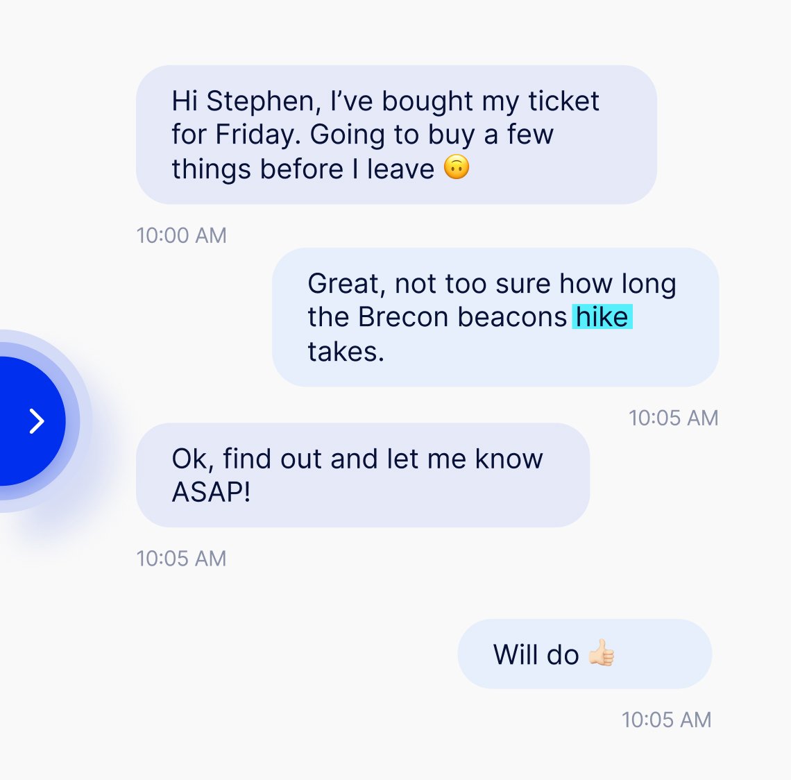 Keywords in conversations trigger a subtle arrow that reveals relevant interest groups.