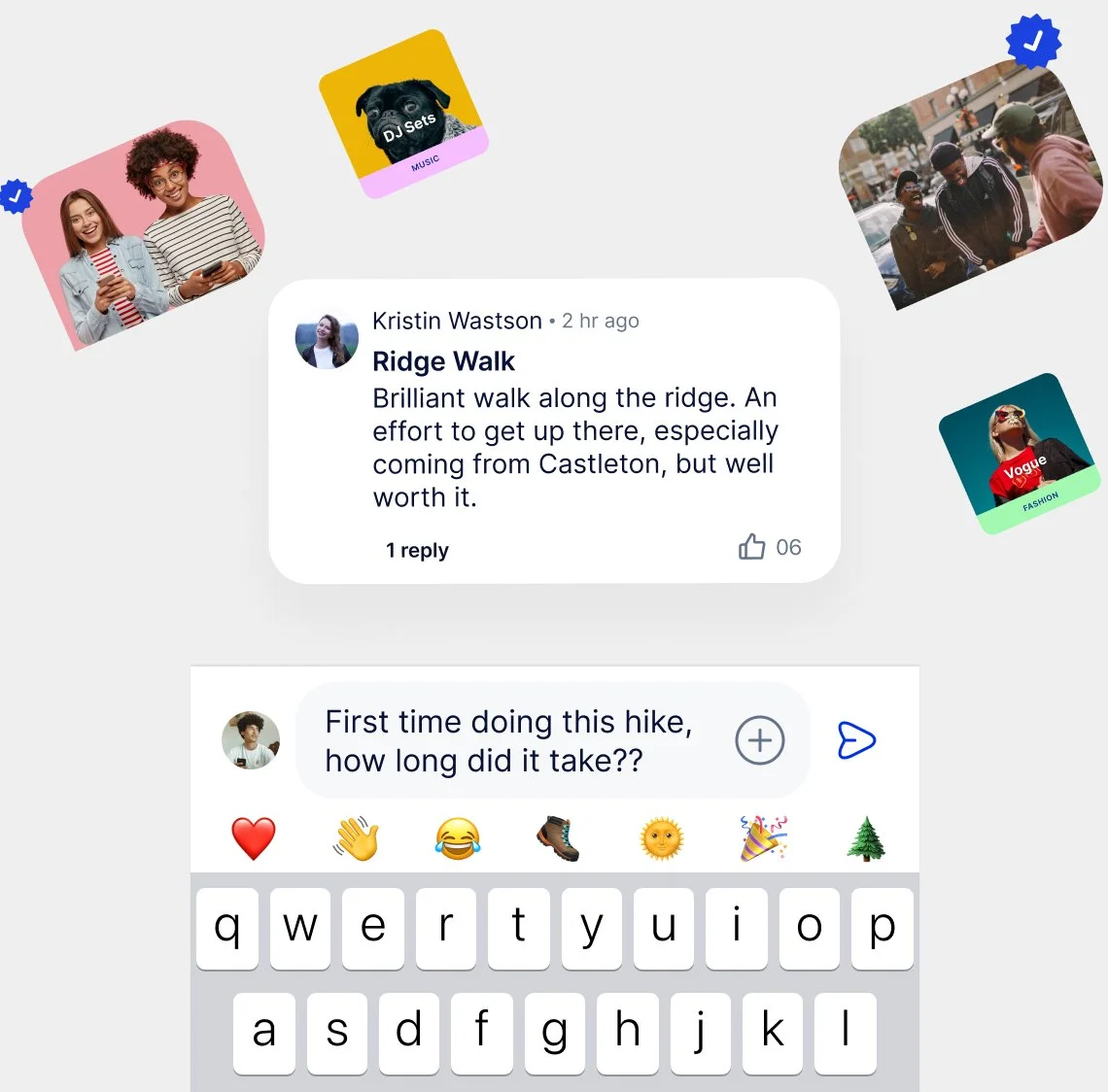 Users can explore groups, join discussions, and participate in meet-ups and comment threads centred around shared interests.